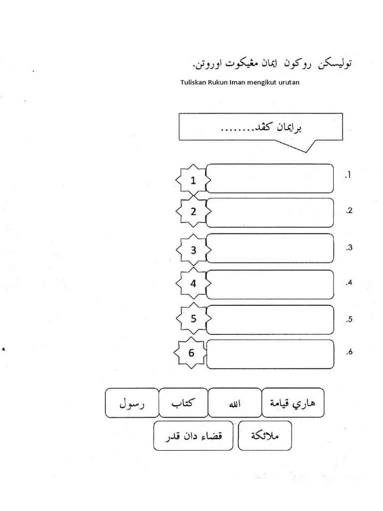 Latihan Rukun Iman 6 Tahun / Ficha Online De Rukun Iman Para Darjah 1